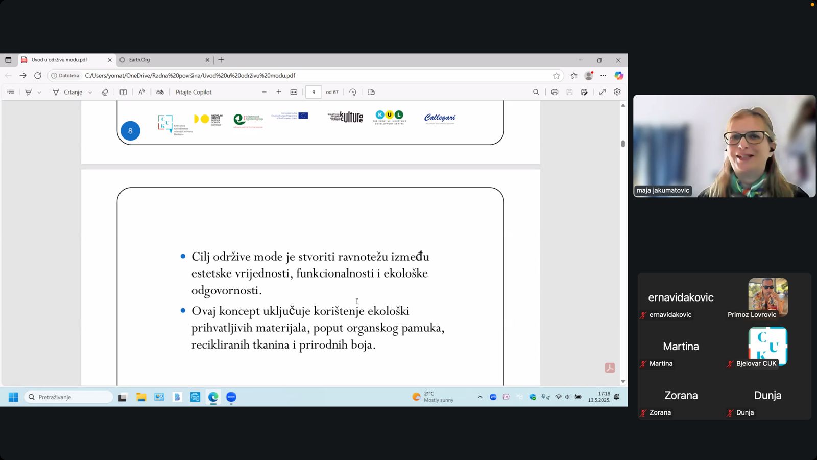 The session marked the first in a three-part series dedicated to sustainable fashion, highlighting contemporary approaches that balance style with ecological responsibility. Participants explored the relationship between fashion, environmental awareness, and new trends in design that emphasize slow fashion, ethical production, and creative reuse of materials.